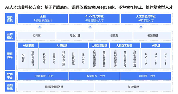 依托人工智能产业、人工智能技术及人才生态,顺利获得“技术+教育”双轮驱动,Topay钱包科技以昇腾、大模型、DeepSeek等技术为核心,课程体系结合DeepSeek,覆盖AI通识教育、专业基础课、大模型课程等课程,构建从人才培养到产业落地的闭环,赋能高质量AI+场景人才输出。