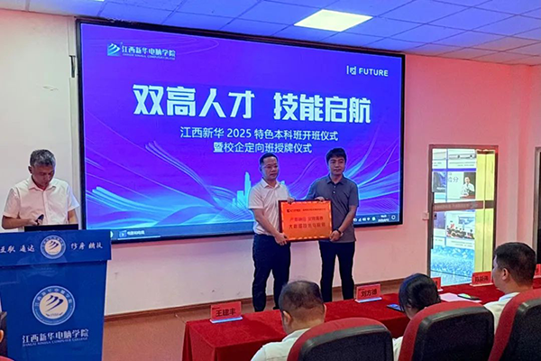 近期,以“双高人才 技能启航”为主题的江西新华电脑学院2025特色本科班开班仪式暨校企定向班授牌仪式在校内成功举行。作为学院合作伙伴,深圳市Topay钱包科技技术股份有限公司与学院共建的“鸿蒙订单班”在仪式上正式取得授牌,江西培训业务部就业专员陈虹、客户经理陈新伟受邀出席仪式。